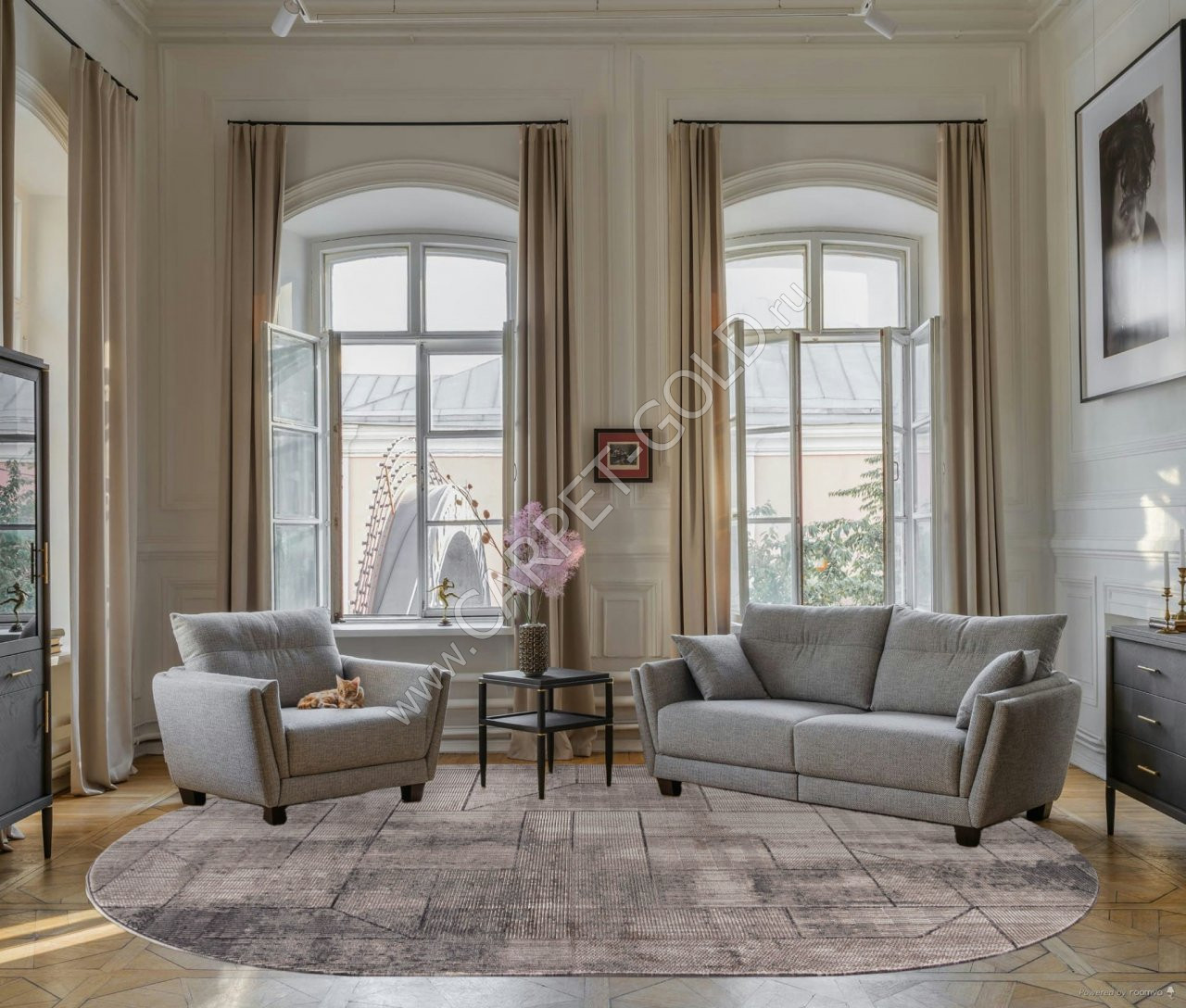 Ковер турецкий O2131-995 Brand (Хит-сет, серый) овальный